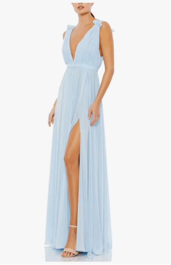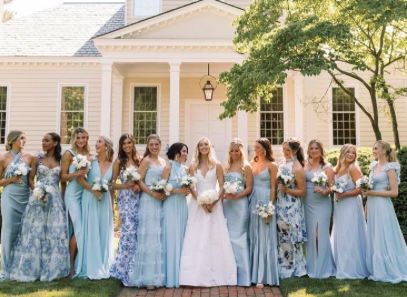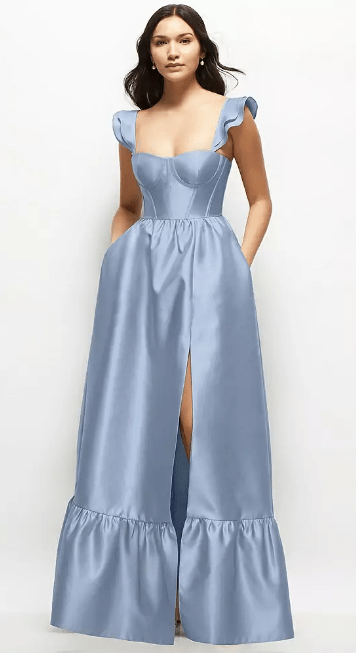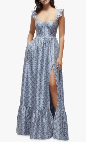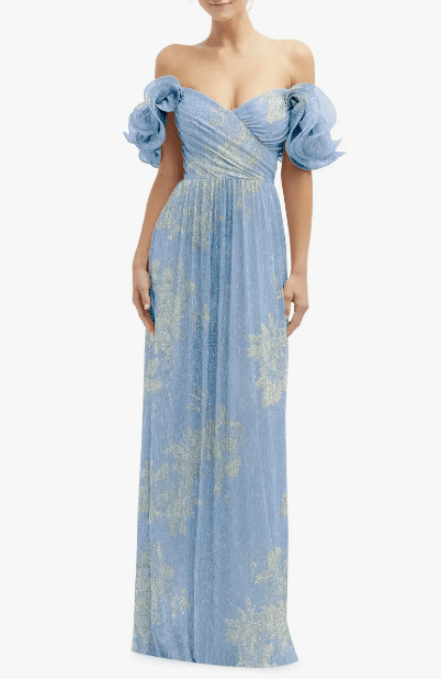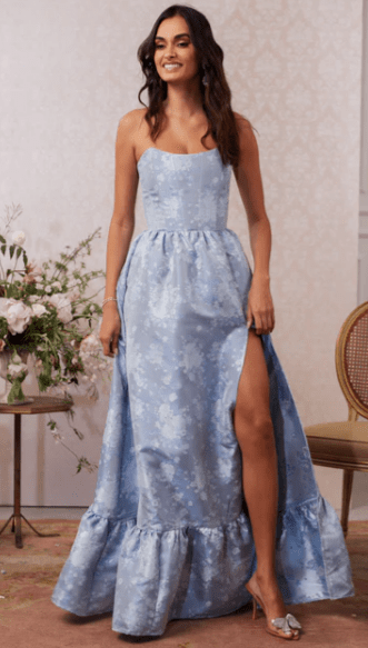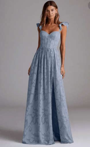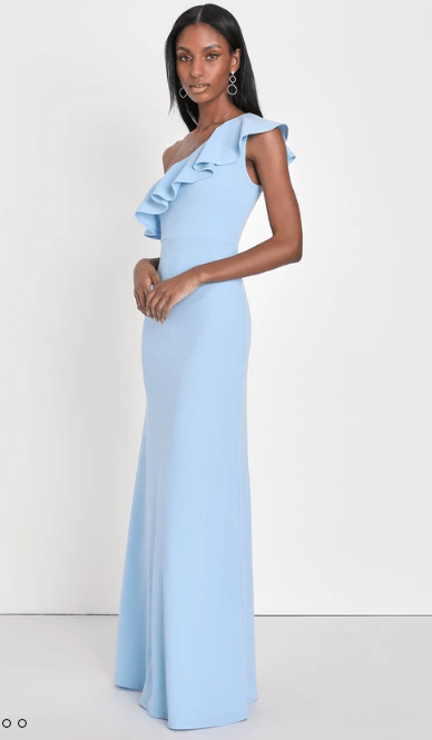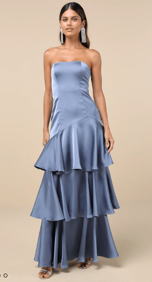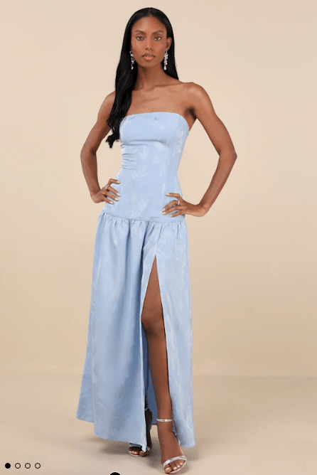 All I ask is that you wear a blue floor-length dress. The rest is up to you! Feel free to have fun with patterns, textures, beading or sparkles, as long as the main part of the dress is light to medium blue. Pick a dress you love and feel comfortable in!