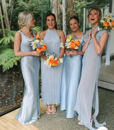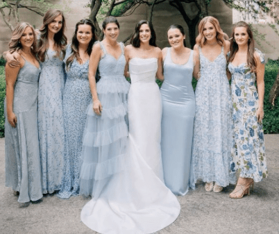 Please refrain from wearing navy blue or teal. If you have a question about a dress you’re considering, feel free to text me anytime!